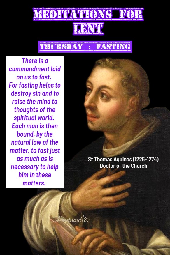 Ash Thursday – 19 February – Our Lenten Journey With St Thomas Aquinas (1225-1274), Doctor of the Church