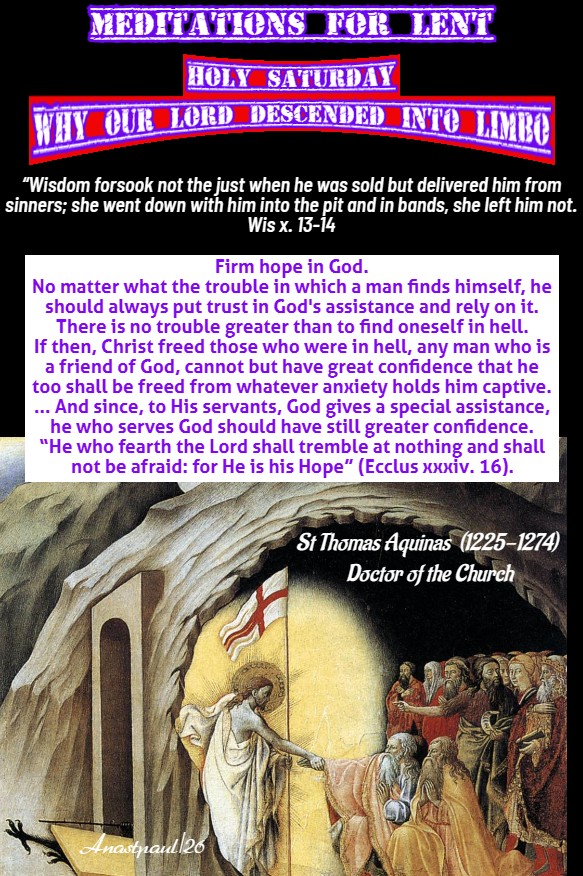 Holy Saturday – 4 April – Our Lenten Journey With St Thomas Aquinas (1225-1274) Doctor of the Church