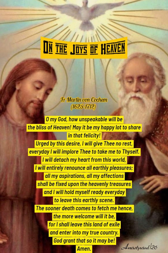 Thought for the Day – 16 April – During this Season of Alleluias and Joy, we will consider Fr von Cochem’s Reflections upon our Heavenly Homeland.