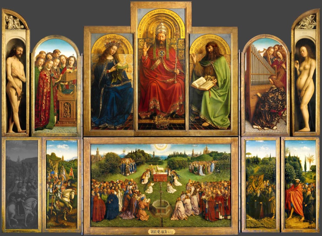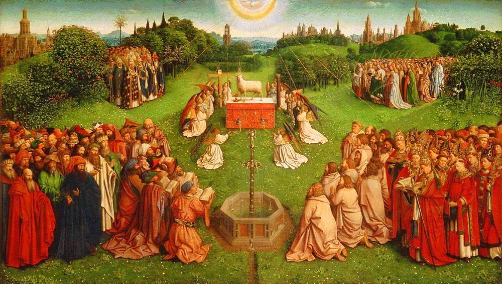 St Hildebert dedicated his life to the service of God. He embraced the monastic life and joined Monks at the Monastery of St Peter in Ghen. Below is a beautiful example of Sacred Images the Ghent Altarpiece by Jan van Eyck (1432). The Adoration of the Lamb at the end of the post is the lower section of the Altarpiece.