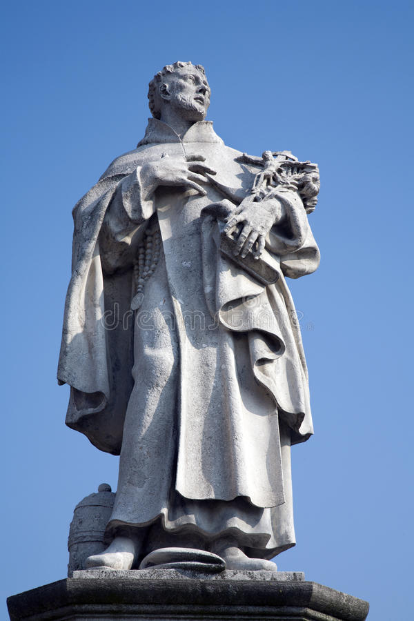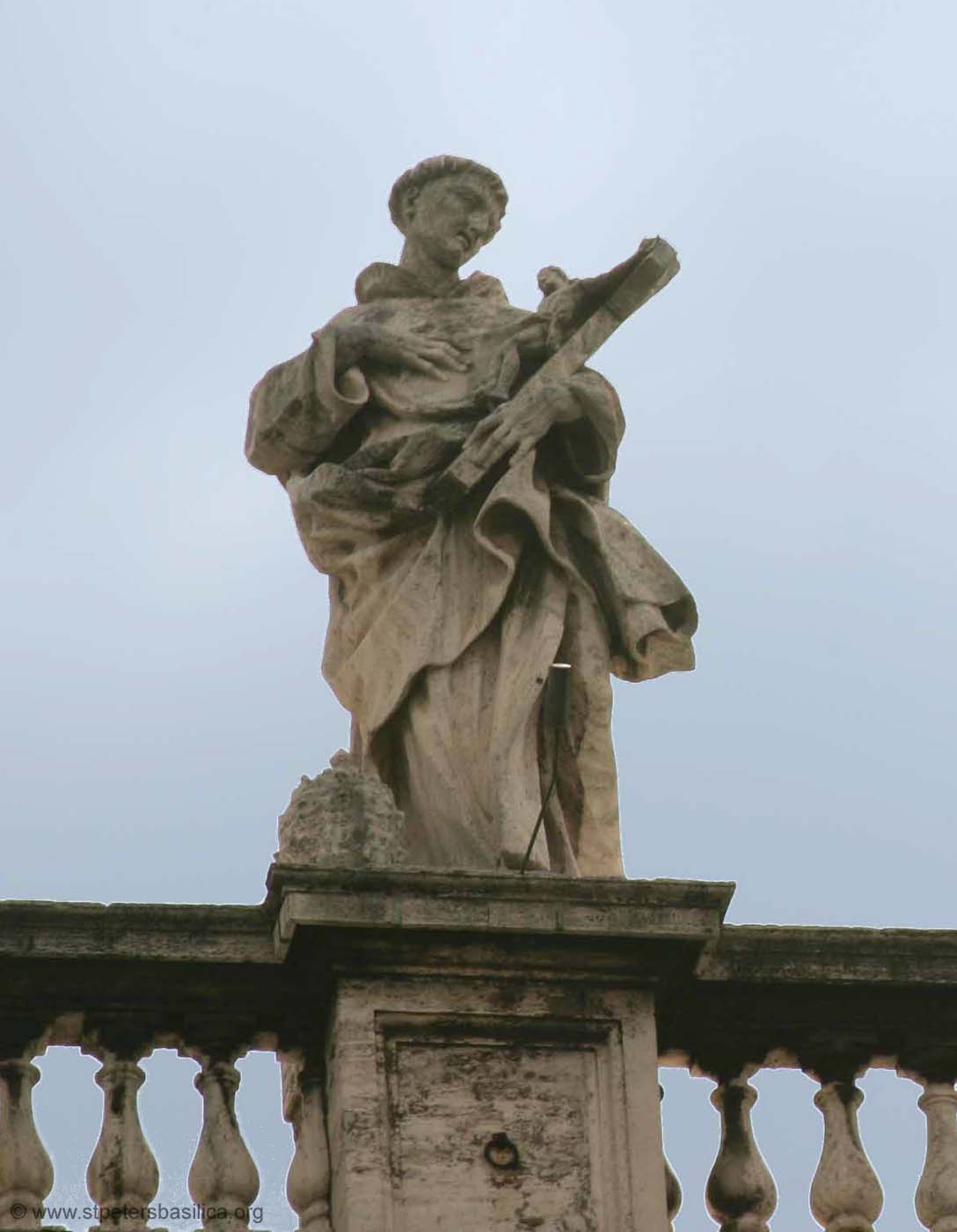 There is a Statue of him on the Charles Bridge in Prague, Czech Republic. Designed in 1714, this Statue was made from Salzburg marble and donated by the Servites’ Convent in Prague. The Statue portrays him holding a Crucifix, a book and a spray. At his feet, there is the Crown of the Pope. A clay model of this statue can be found in the Salzburg museum. The second statue below is on the Colonade at St Peter’s.