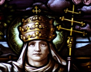 Saint_Leo_Catholic_Church_(Columbus,_Ohio)_-_stained_glass,_loft,_Pope_St._Gregory_the_Great,_detail