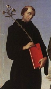 Perugino_Madonna_and_Child_with_Four_Saints_Tezi_Altarpiece_03_St_Nicholas_of_Tolentino