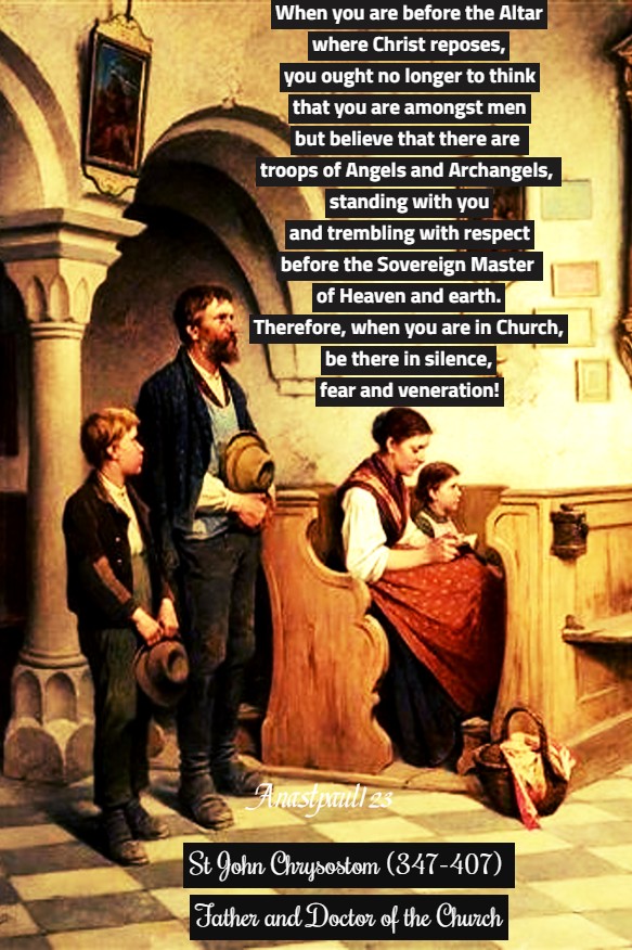 As you can see, dear brothers and sisters, Chrysostom’s lesson on the authentically Christian presence of the lay faithful in the family and in society is still more timely than ever today. Let us pray to the Lord to make us docile to the teachings of this great Master of the faith.”