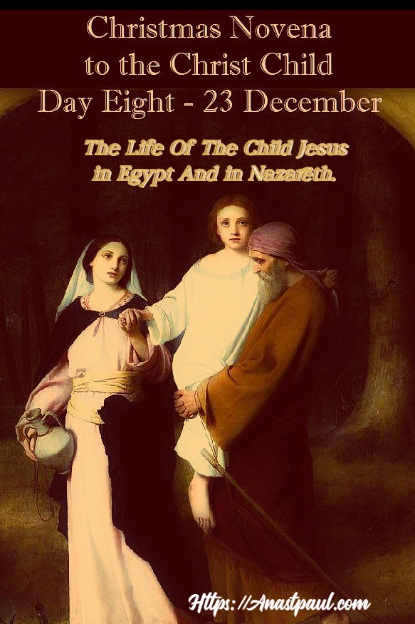 Our Blessed Redeemer spent the first part of His childhood in Egypt, leading there for several years, a life of poverty and humiliation. In that land Joseph and Mary were foreigners and strangers, having there neither relatives nor friends.