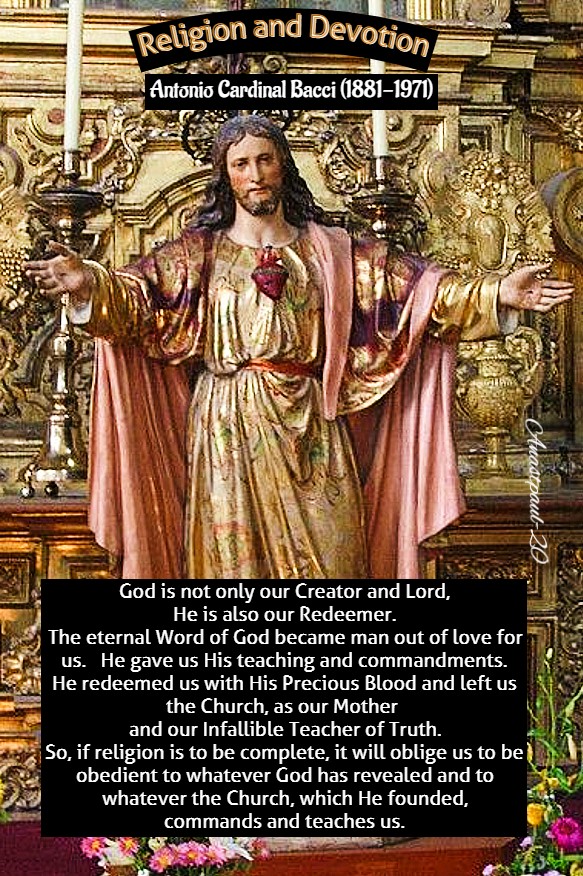 So, if religion is to be complete, it will oblige us to be obedient to whatever God has revealed and to whatever the Church, which He founded, commands and teaches us.”