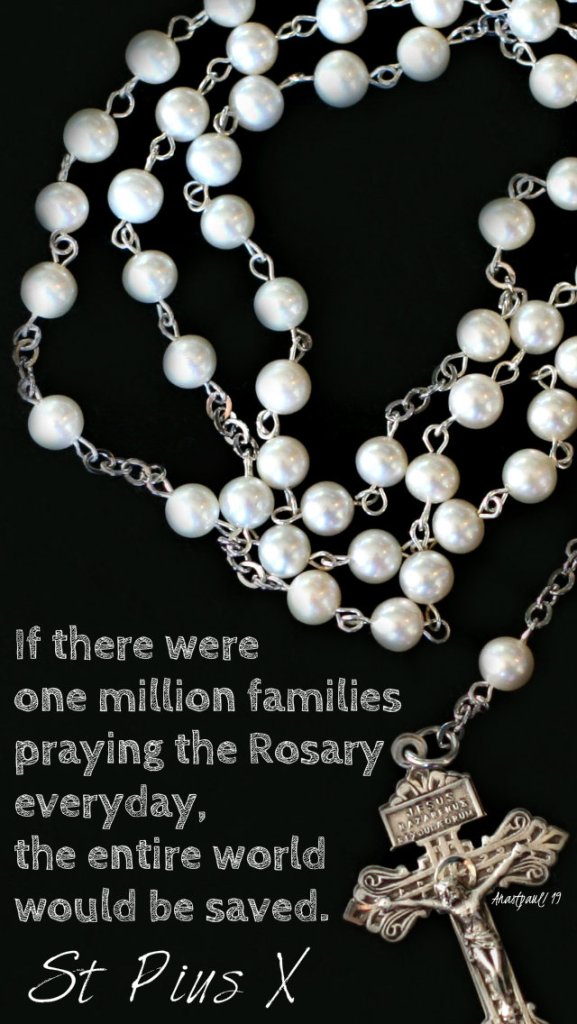 “The ROSARY is the most beautiful and the most rich in graces of all prayer. It is the prayer that touches most, the Heart of the Mother of God… and if you wish peace to reign in your homes, recite the FAMILY ROSARY.”