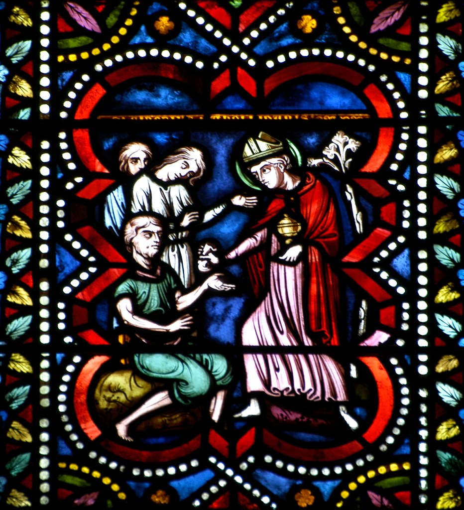 St Lupus, Bishop of Troyes, who had loved and honoured him whilst he was yet wandering in the dry deserts of the world, found his affection for him redoubled when he beheld him become a guide of souls in the paths of religion and virtue. Upon his promotion to the Episcopal dignity, he wrote him an excellent letter of congratulation and advice, in which, among other things, he told him: “It is no longer by pomp and an equipage that you are to keep up your rank but by the most profound humility of heart. You are placed above others but must consider yourself as below the meanest and last in your flock. Be ready to kiss the feet of those whom formerly you would not have thought worthy to sit under your feet. You must render yourself the servant of all.” This Sidonius made the rule of his conduct. He kept always a very frugal table, fasted every second day, prayed much and though of a tender constitution, often seemed to carry his penitential austerities to excess. He was frequently in want of necessaries, because he had given all away to the poor. His love and compassion for them, even whilst he lived in the world, was such, that he sometimes had sold all his plate for their relief.