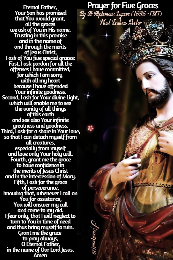 Prayer for Five Graces By St Alphonsus Liguori (1696-1787) Most Zealous Doctor