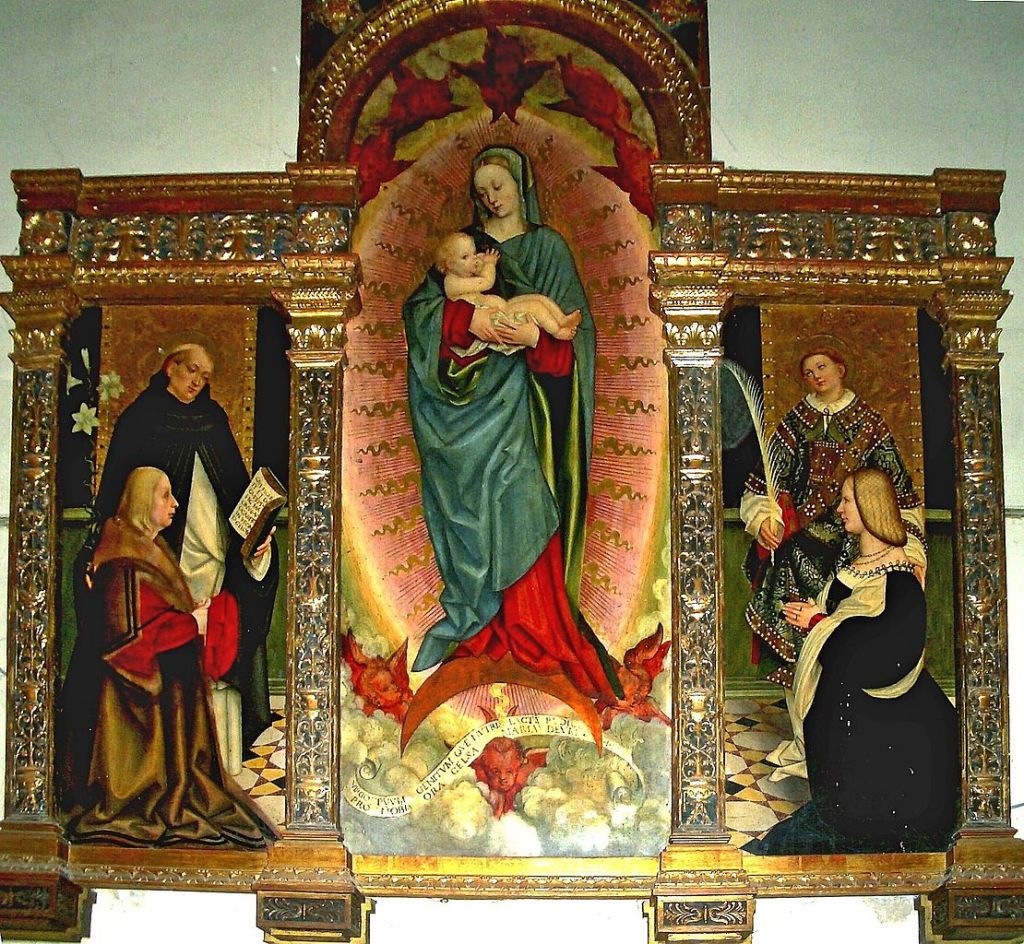 Now old, he died on 10 September 1214, with a great reputation as a saint among the people and in his Order. The body was placed first in the cloister of the Monastery, then under the main altar. An altar was dedicated to him in 1577, becoming the local parish. On 2 September 1616 there was a sacking of the Monastery by the soldiers of the Duke of Savoy but fortunately, the relics were not dispersed. In 1786 the Cistercians, moving, took them to Castelnuovo Scrivia. The people of Trento got them back on 9 September 1792 and they were definitively placed in the town’s parish Church, St Bartolomeo of Trino, which also includes the magnificent Altarpiece of the Immaculate Conception (see below). Pope Blessed Pius IX, on 8 April 1875, confirmed the cult and Beatified Oglerio. The Abbey of Lucedio was secularised by Pope Pius VI in 1784, the beautiful bell tower and a few elements of the complex remain original from the times of Oglerio, subsequently remodelled several times.