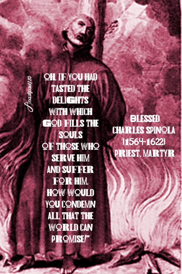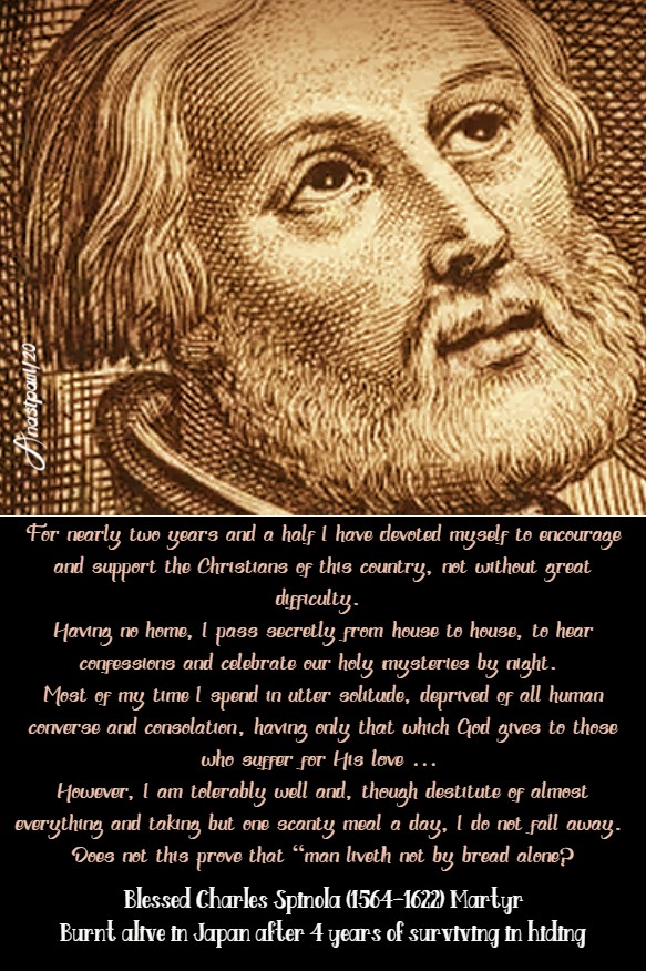 Saint of the Day – 11 September – Blessed Charles Spinola SJ (1564-1622) Priest, Martyr, Missionary to Japan – born as Carlo Spinola in 1564 in Madrid, Spain and died by being slowly burned to death on 10 September 1622 at Nagasaki, Japan.