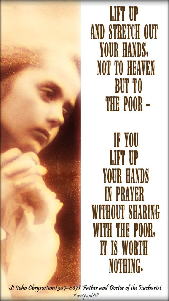 “Lift up and stretch out your hands, not to heaven but to the poor… if you lift up your hands in prayer without sharing with the poor, it is worth nothing.”