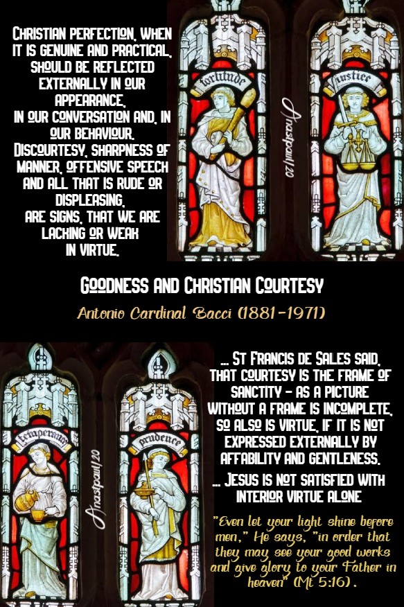 St Francis de Sales said, that courtesy is the frame of sanctity – as a picture without a frame is incomplete, so also is virtue, if it is not expressed externally by affability and gentleness.