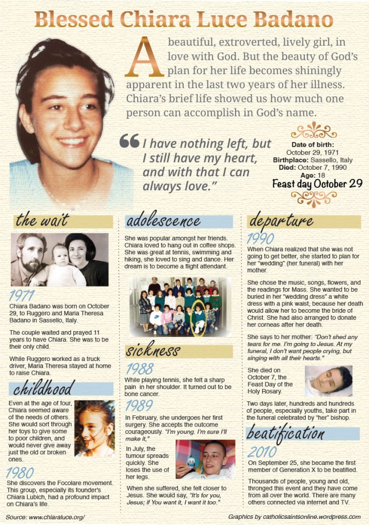 Quote/s of the Day – 29 October – the Memorial of Blessed Chiara “Luce” Badano (1971 –1990)