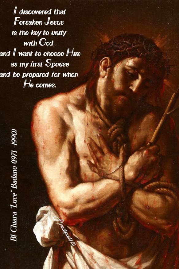“I discovered that Forsaken Jesus is the key to unity with God and I want to choose Him as my first Spouse and be prepared for when He comes.”