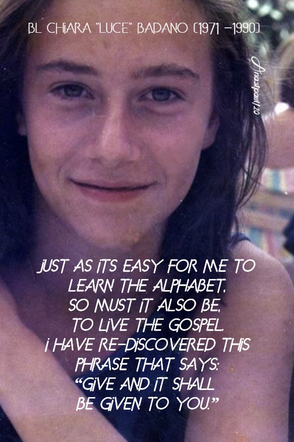 “Just as its easy for me to learn the alphabet, so must it also be, to live the Gospel. I have re-discovered this phrase that says: “Give and it shall be given to you.”