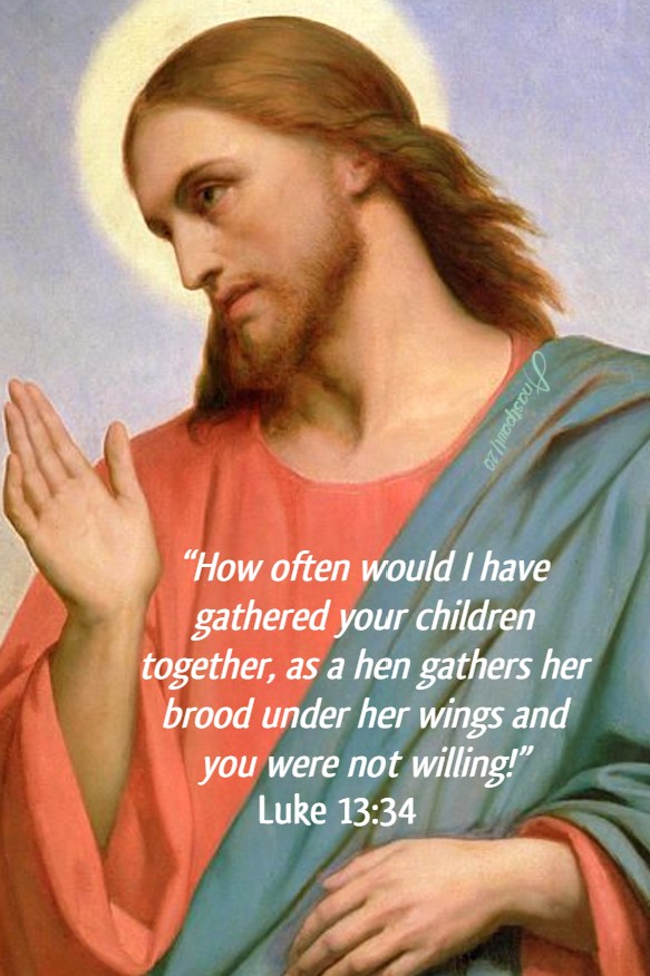 “How often would I have gathered your children together, as a hen gathers her brood under her wings and you were not willing!” – Luke 13:34