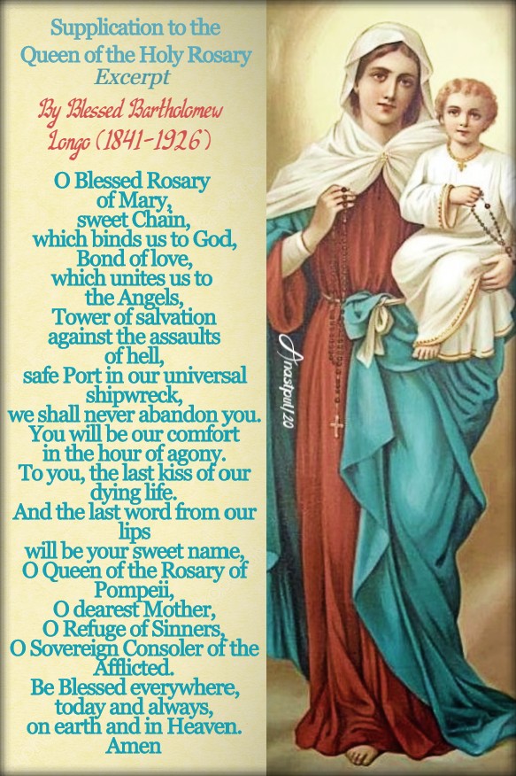 Excerpt from the Petition to Our Lady of the Rosary of Pompeii also known as Supplication to the Queen of the Holy Rosary By Blessed Bartholomew Longo (1841-1926) Apostle of the Holy Rosary