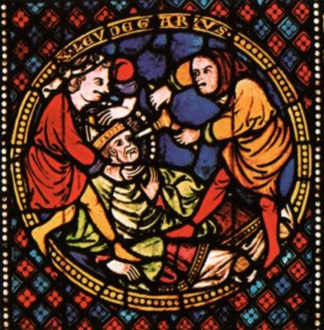About 675 the Duke of Champagne, the Bishop of Châlons-sur-Marne and the Bishop of Valence, stirred up by Ebroin, attacked Autun and Leodegar fell into their hands. At Ebroin’s instigation, Leodegar’s eyes were gouged out and the sockets cauterized and his tongue was cut out. Some years later Ebroin persuaded the king that Childeric had been assassinated at the instigation of Leodegar. The Bishop was seized again and, after a mock trial, was degraded and condemned to further exile, at Fécamp, in Normandy. Near Sarcing he was led out into a forest on Ebroin’s order and beheaded.