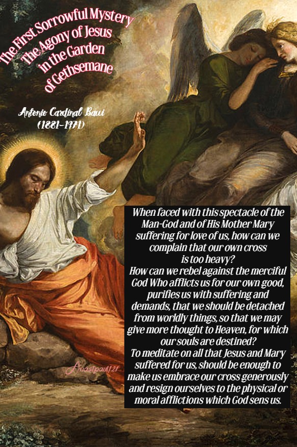3 thoughts on “Thought for the Day – 8 October – The First Sorrowful Mystery – The Agony of Jesus in the Garden of Gethsemane”