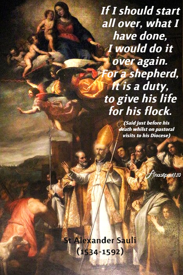 PRAYER – Lord Holy God and Father, open our hearts o Your grace. Let it go before us and be with us. Open our hearts to Your love. Let it be the foundation of our love, let our love be Your love. Stepping in the footsteps of Your Son, in imitation of His Saints as St Alexander Sauli lived, grant that by his intercession, we too may reach Your eternal Feast. Through Jesus our Lord who lives and reigns with You and the Holy Spirit, God now and forever, amen.