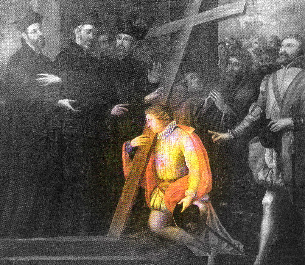 The Barnabites imposed a harsh test on the youth before they would accept him. On 17 May, 1551, the Vigil of Pentecost, he had to carry a heavy cross through the streets dressed as a page and preach on the love of God. That evening he was received as a postulant.