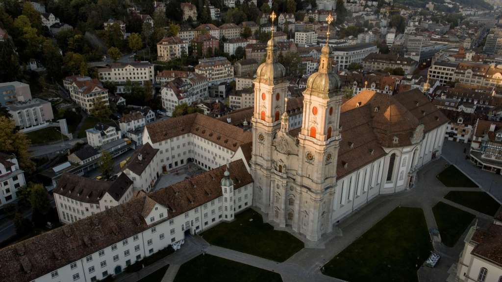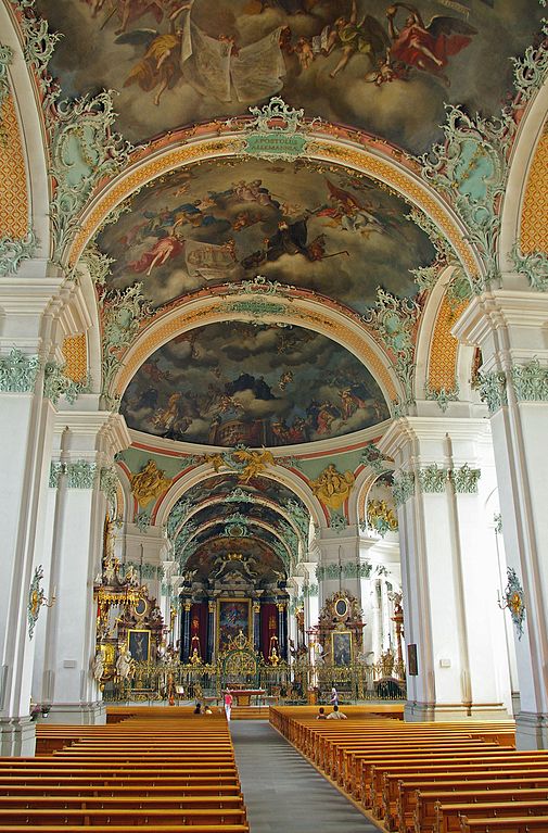 After his death, a small church was erected which developed into the Abbey of St Gall, the nucleus of the Canton of St Gallen in eastern Switzerland, the first abbot of which was Saint Othmar. The “Abbey of St Gall,” was named for the saint who had lived in this place and whose relics were honoured there. Below is the world-famous Basilica Cathedral, the renowned Baroque Interior, the Abbey and the very important Library at St Gall’s Abbey.