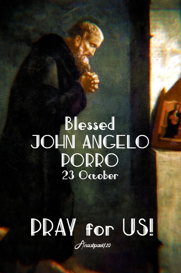 PRAYER – Lord God, You fill us with Your grace and teach us true faith. Strengthen in our hearts that faith that no trials may quench the fire, that we may seek Your face in every moment and accept AND LIVE all of Your will. Send us Your Spirit to keep the fire blazing. By the inspiration and prayers of Blessed John Angelo Porro, may we grow in sanctity and may the humble love and intercession of Mary Mother of our faith, be our succour. Through Jesus Your Son our Lord, with the Holy Spirit, God forever, amen.