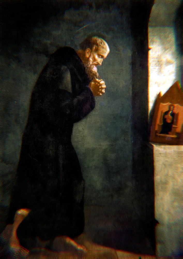 After Alabanti’s death, John Angelo returned to Milan about 1495 and it seems that he was elected Prior. Even in the centre of that famous city, he managed to preserve something of the solitary life which he so loved. His biographer Fra Filippo Ferrari tells us that “he lived in a room a little removed from the others.”