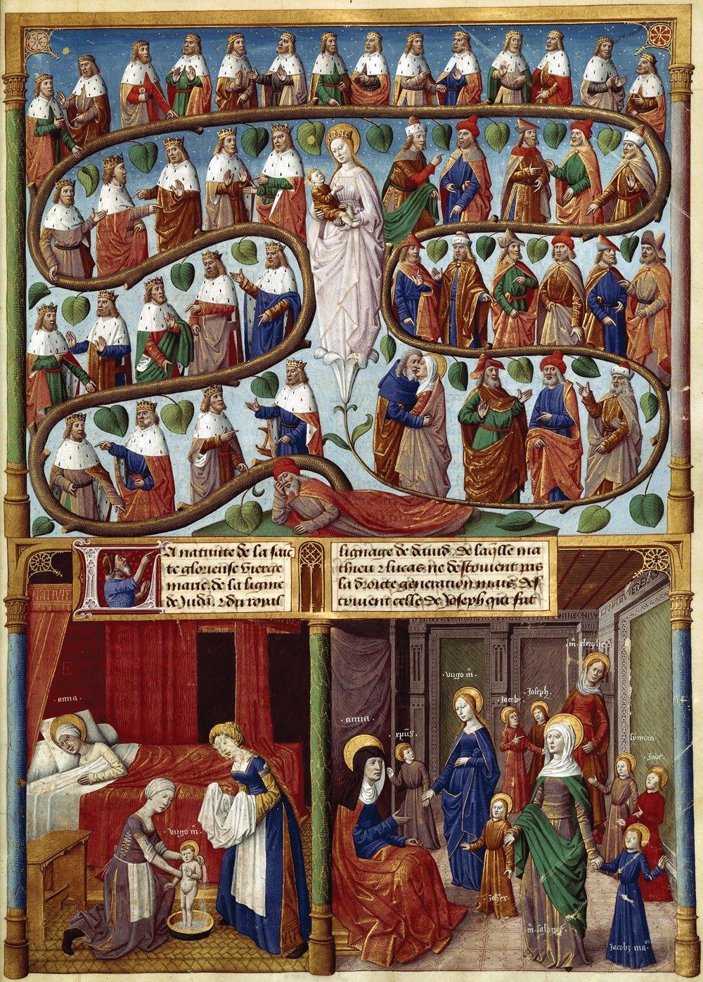 Saint Matthew’s list is divided artificially into three equal parts of 14 names each, with several intentional omissions: from Abraham the father of the chosen people to David the king, to whose family the promise was made (2 Kings 7); David and the royal line after him to the Babylonian captivity; the descendants of the royal line from the captivity to Joseph, the legal father of Our Lord.