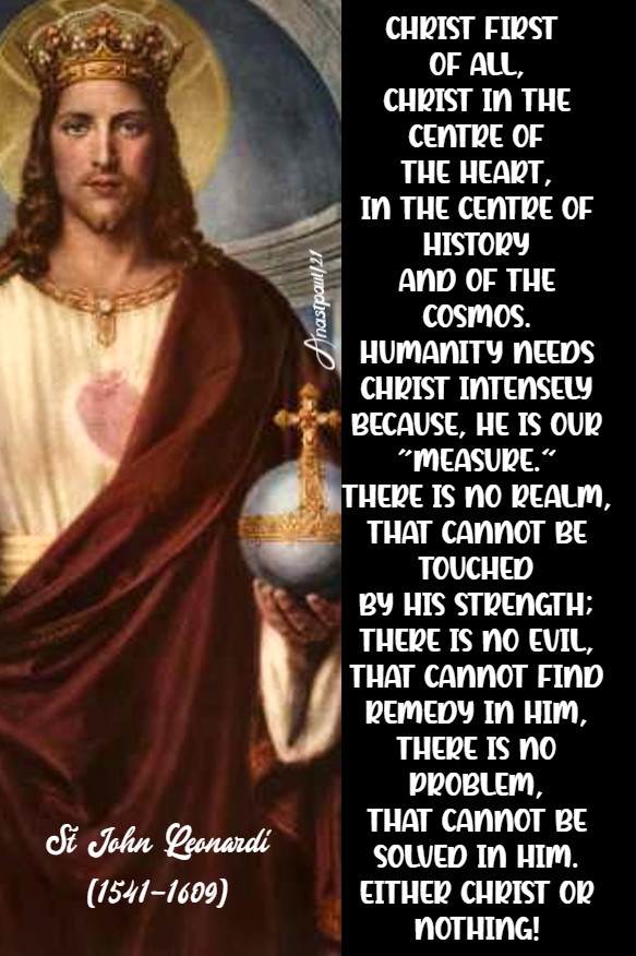 “Christ first of all, Christ in the centre of the heart, in the centre of history and of the cosmos. Humanity needs Christ intensely because, He is our “measure.” There is no realm, that cannot be touched by His strength; there is no evil, that cannot find remedy in Him, there is no problem, that cannot be solved in Him. Either Christ or nothing!”