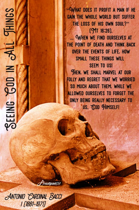 “Sometimes we fail to see God in all the events of life because we lack faith and absolute confidence in the Lord. We must try to increase this faith and live always in the presence of God and, we must regard the honour and glory of this world as worth absolutely nothing without God. “What does it profit a man if he gain the whole world but suffer the loss of his own soul?” (Mt 16:26).