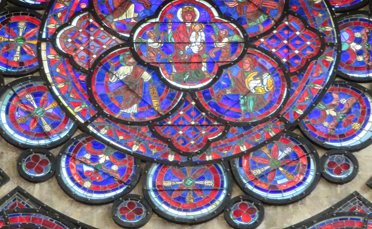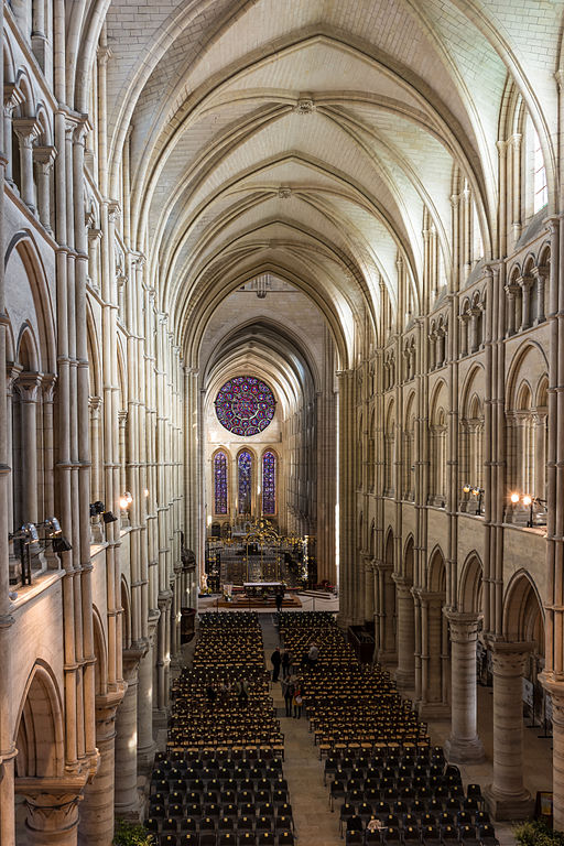 Much of the stained-glass is original and, as at Notre Dame Cathedral in Paris, there is a beautiful rose window dating from the 13th century. It depicts the Blessed Virgin seated on a throne with her Divine Child between Saint John the Baptist and the prophet Isaiah. The interior of the Cathedral was finished with white stone, it is considerably brighter than Notre Dame Cathedral in Paris.