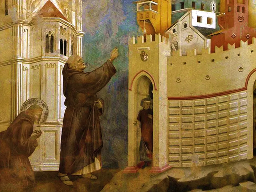 Sylvester often accompanied Francis during his preaching tours. Once, in the city of Arezzo, it was claimed by the residents, that Sylvester’s preaching and prayers brought peace to the City, which was falling prey to hatred and violence amongst its citizens. In another City where civil war was raging, Sylvester was commanded by Francis to drive the devils out. At the City gate Sylvester cried out: “In the name of almighty God and by virtue of the command of His servant Francis, depart from here, all you evil spirits.” The devils departed and peace returned to the City.