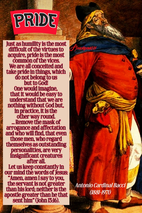 “Just as humility is the most difficult of the virtues to acquire, pride is the most common of the vices. We are all conceited and take pride in things, which do not belong to us but to God! One would imagine, that it would be easy to understand that we are nothing without God but, in practice, it is the other way round. It is not only prominent personalities, noted scientists and men of letters but also the most ordinary men, who believe, that they are unique and superior to their fellows.