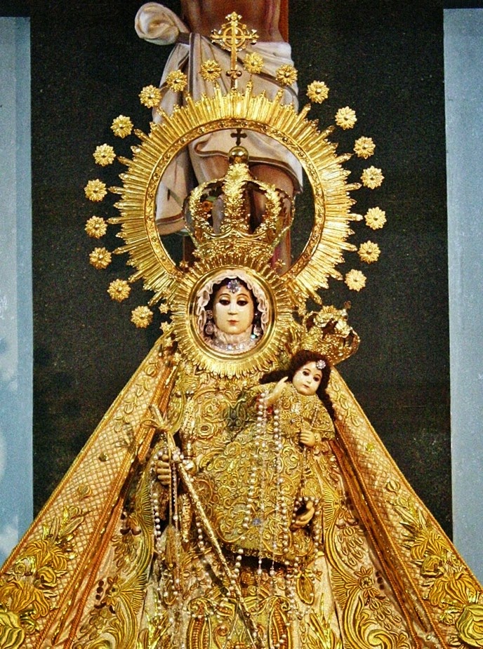 The lovely Statue was sculpted by a man who was neither Filipino nor a Catholic, and was commissioned in 1593 by the Spanish Governor of the Philippines. The Chinese artist who gave the Virgin somewhat Asian features, was well compensated for his efforts, including being converted to the True Faith through the intercession of the Blessed Mother.
