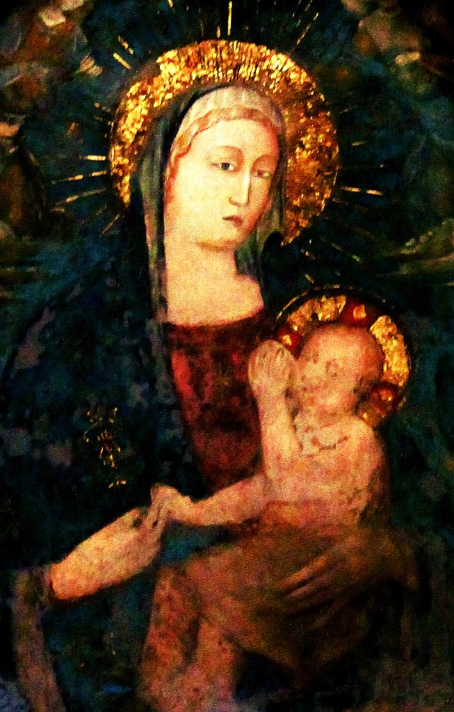 The Abbot Orsini wrote: “It is related ,that in the year 1483, a man who had lost his money by gaming, after blaspheming at this picture, gave it four stabs with a dagger and that it bled so copiously, that the miracle was at once divulged all over the City. This picture is still preserved in the Church of Our Lady of Peace, where it is to be seen at the high Altar, framed in marble.”