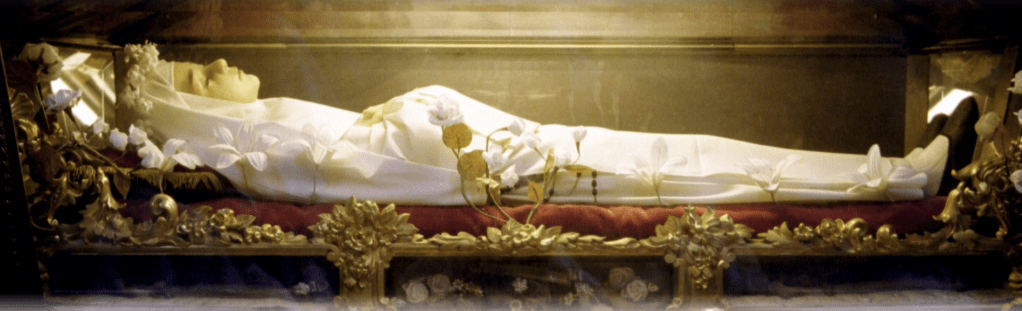 Her remains are kept in Bologna at the Church of San Sigismondo, beneath the wax effigy of her likeness. Blessed Imelda was Beatified on 20 December 1826 by Pope Leo XIII.