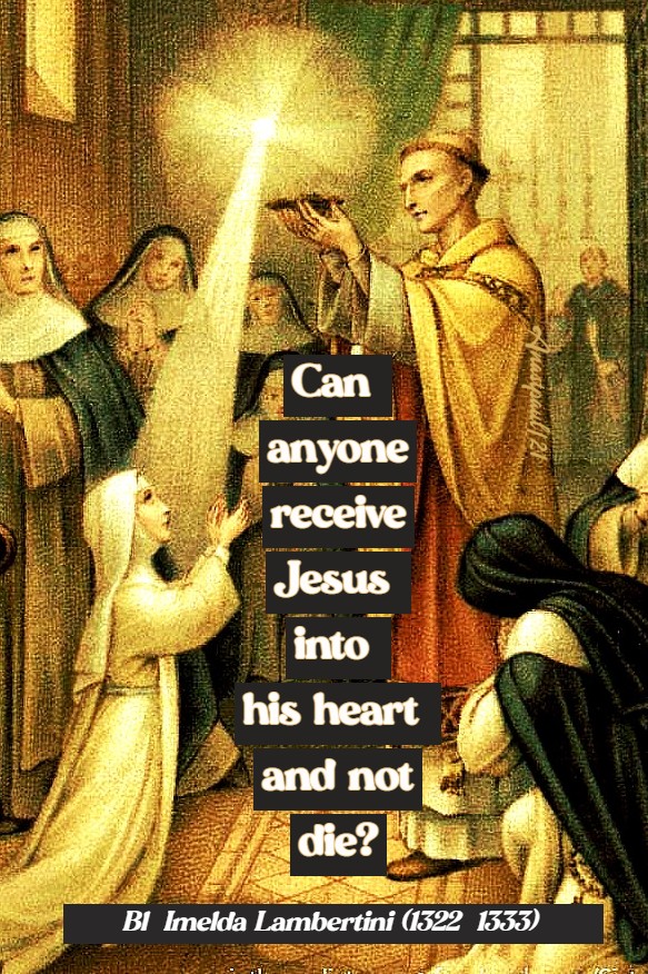 Saint of the Day – 13 May – Blessed Imelda Lambertini (1322-1333) Child Mystic, Virgin. Born in 1322 AS Imelda Dpmenica Lambertini at Bologna, Italy and died on the Feast of the Ascension, 12 May 1333 Bologna, Italy. Patronage – First Communicants (named by Pope Saint Pius X).
