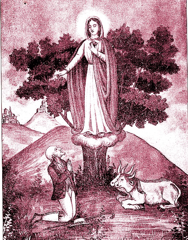 The Virgin Mary appeared on 18 May 1480 on the top of a tree , to the peasant Giovanni Floro, (also referred to as Floro di Giovanni, who was plowing the land in a field located just outside the town. He noticed that his oxen tended to kneel and, looking around, he saw the Madonna on the tree. The Virgin turned to him and asked him to build a Church dedicated to her in the locality of Piano del Castellano in Canzano. [ The farmer immediately returned to the village and reported what had happened to him but, he was not believed and he was mocked and insulted by his fellow villagers.