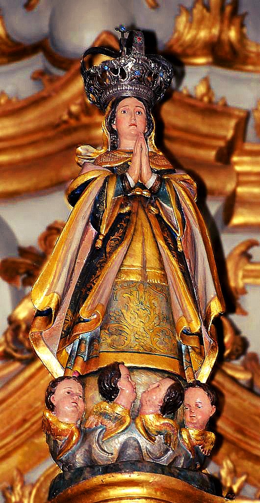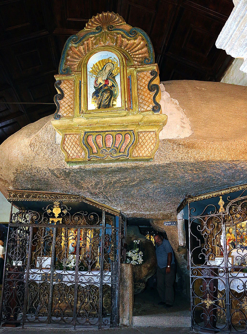 In 1498, a mute girl was herding her flock in the hills of Quintela, outside the Town of Sernancelhe in north central Portugal, when she found a Statue of the Virgin and Child in the cleft of a rock. Young Joana made the Statue an object of personal devotion, carrying it back and forth from home, where she made clothes for it, to the hills, where she would set it on a rock, surround it with flowers and pray, while the sheep grazed nearby. Her mother began to feel the “doll” was distracting the girl from her chores and one day threw it in the fireplace. Suddenly Joana spoke, for the first time in her life: “Mother! That’s Our Lady of the Grotto! What are you doing?” The girl grabbed the unburnt image out of the fire. She was cured but her mother’s arm became paralysed! After they both prayed, the mother regained use of her arm. As word spread through the area, people began coming to venerate the Statue, and the Parish Priest suggested moving it to the Church. But three times, the image vanished from the Church, reappearing in its original place between the rocks. So, a Chapel was built there, enclosing the location where Joana found the Statue. People believed that in 982, nuns fleeing the Islamic conqueror Almanzor, had hidden the image there.