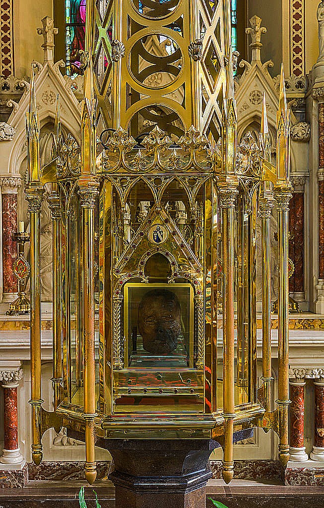 Oliver was hung, drawn and quartered at Tyburn on 1 July 1681, aged 55, the last Catholic Martyr to die under the English persecutio. His body was initially buried in two tin boxes, next to five Jesuits who had died previously, in the courtyard of St Giles in the Fields Church. The remains were exhumed in 1683 and moved to the Benedictine Monastery at Lamspringe, near Hildesheim in Germany. The head was brought to Rome and from there to Armagh and eventually to Drogheda where since 29 June 1921 it has rested in Saint Peter’s Church. Most of the body was brought to Downside Abbey, England, where the major part is located today, with some parts remaining at Lamspringe. On the occasion of his Canonisation in 1975, his casket was opened and some parts of his body given to the Cathedral at Drogheda in Ireland.