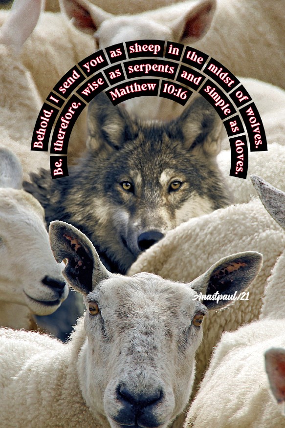 “Behold, I send you as sheep in the midst of wolves. Be, therefore, wise as serpents and simple as doves.” –Matthew 10:16