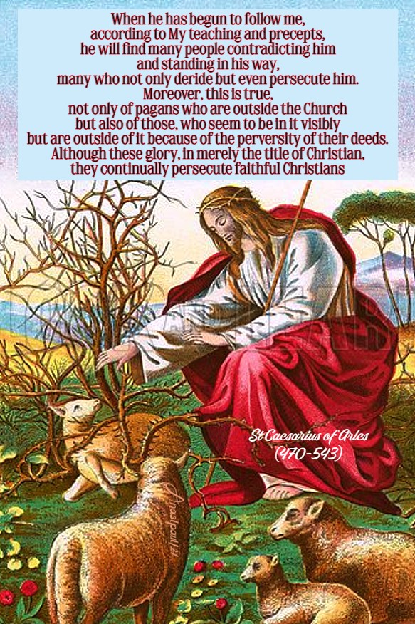 “When he has begun to follow me, according to My teaching and precepts, he will find many people contradicting him and standing in his way, many who not only deride but even persecute him. Moreover, this is true, not only of pagans who are outside the Church but also of those, who seem to be in it visibly but are outside of it because of the perversity of their deeds. Although these glory, in merely the title of Christian, they continually persecute faithful Christians.”