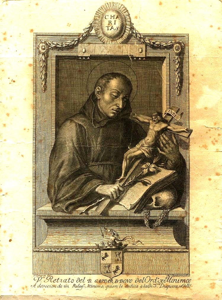 At age twenty, Gaspar joined the army of the Emperor Charles V, in search of fortune. He served as a soldier for about ten years but continued to try and live a devout and religious life, by praying, saying the rosary daily, donating to charity and frequenting places of worship. He fought in Lombardy where he was seriously wounded in the head. Left for dead, Gaspar made a promise, if he survived, to enter the Minim Friars, founded by St Francis of Paola.