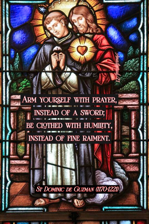 PRAYER – Lord God, You gave St Dominic to the Church as a great preacher of the Truth. We pray that he will help us in these times, our times of lies, ruled by the evil one, by his merits, his teachings and his unfailing prayer. Through Jesus the Christ, Our Lord in the unity of the Holy Spirit, God now and for all eternity, amen.