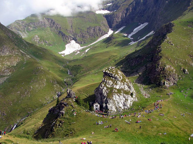San Besso was famous as a great thaumaturge saint, author of countless miracles, protector of soldiers against the dangers of war. The special devotion to the Saint is still expressed today in the feast in his honour celebrated annually on 10 August in the Sanctuary located in the mountains of the Gran Paradiso National Park, in the high Val Soana at over 2000 meters above sea level. The faithful flock in large numbers both from Campiglia and from the Cogne valley, from which it is necessary to leave the day before and stay overnight at the Sanctuary shelter. Many once wore the colourful traditional costumes of the different valleys.