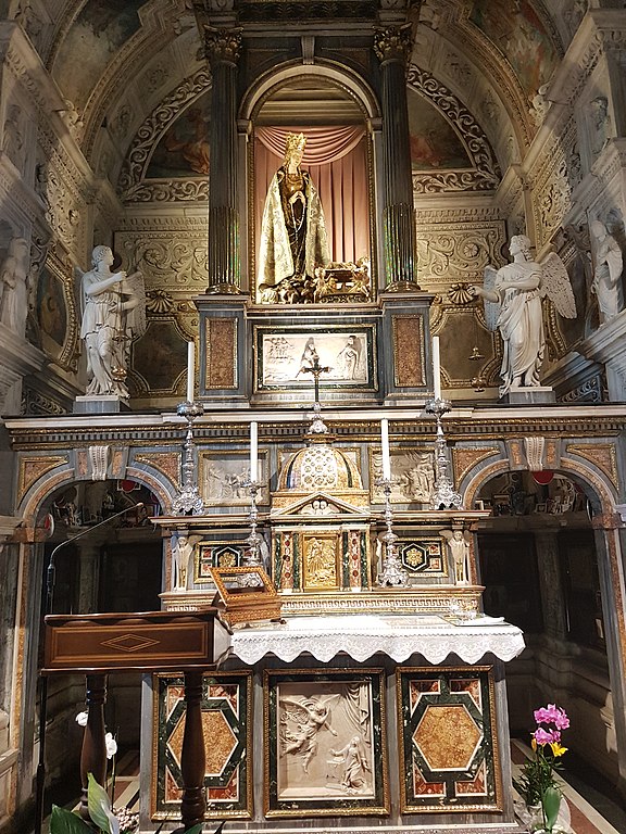 The Virgin’s Statue was part of a silver-clad grouping executed by woodcarver G Angelo Mayno around 1520. Napoleonic raiders stripped off the precious metal and destroyed the other Statues.