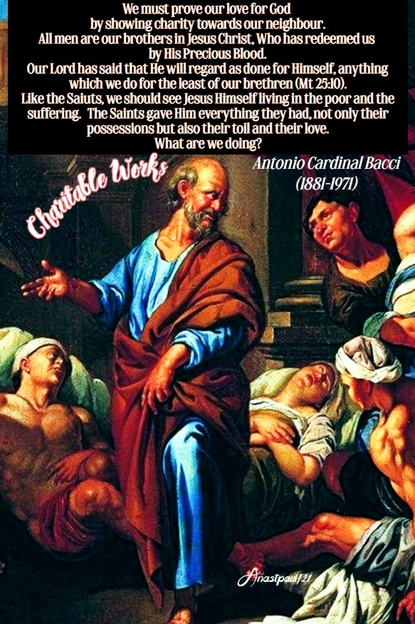 We must prove our love for God by showing charity towards our neighbour. All men are our brothers in Jesus Christ, Who has redeemed us by His Precious Blood. Our Lord has said that He will regard as done for Himself, anything which we do for the least of our brethren (Mt 25:10).