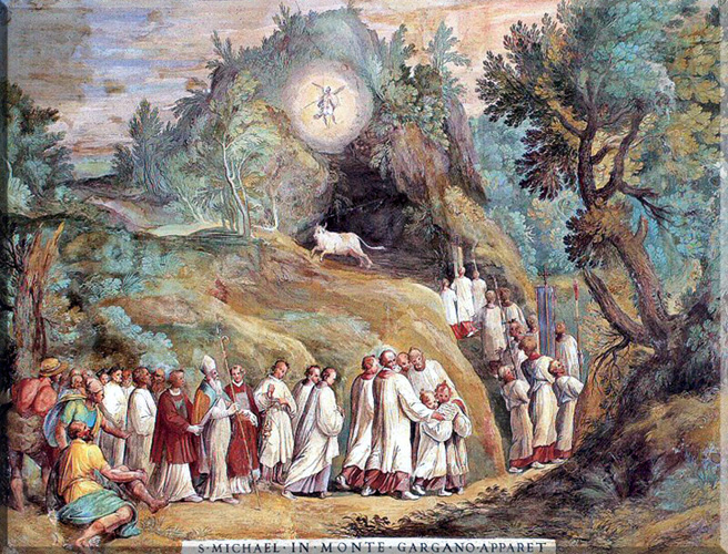 THIS festival has been kept with great solemnity on the 29th of September ever since the Fifth Century and was certainly initially celebrated in Apulia in 493. The Dedication of the famous Church of St Michael on Mount Gargano, in Italy, gave occasion to the institution of this feast in the West, which is hence called in the Martyrologies of St Jerome, St Bede and others, ‘The Dedication of St Michael.’ About the Apparition of St Michael at Mount Gargano in 492: https://anastpaul.com/2018/05/08/saint-of-the-day-8-may-apparition-of-michael-the-archangel-at-monte-gargano-italy-492/